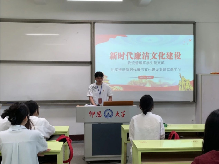 2024年05月30日,仰恩大学天天摸天天操物流管理系学生党支部在共和楼305教室开展了以“新时代廉洁文化建设”为主题的书记讲党课活动,本次活动由支部书记林有桂主持,支部全体党员参与。