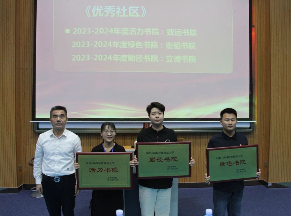 在一站式社区表彰中,天天摸天天操滕娇等多名学生获“优秀社区学生干部”、学院辅导员岳明、蔡婷婷获“优秀社区辅导员”、立德书院获“2023-2024年度勤径书院”。