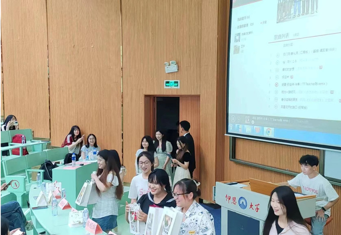 环节的最后,伴随着悠扬的音乐,优秀毕业生代表们为老师送上礼物,表达内心最真挚的感谢,感谢他们大学四年的辛勤付出。老师们接过鲜花,脸上洋溢着幸福的笑容。这些礼物不仅代表着学生们对老师的敬意和感激,更承载着他们的师生情谊。
