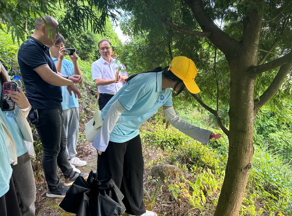 图2 实践队员正近距离观赏福建柏