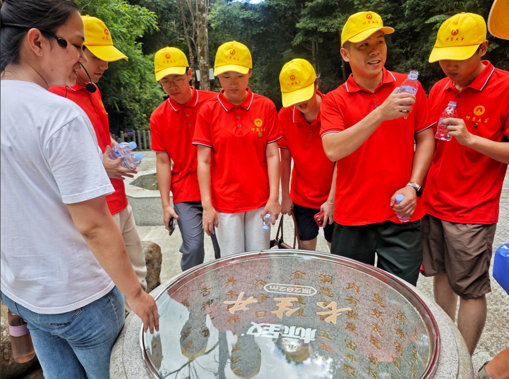 爬上百余级台阶,深入山林,一窥源头——长生井水源保护区。这口井象征着企业对干净水源的要求,实践队队员们围绕在井边,认真聆听讲解员讲述这口井的历史,不禁感叹到每一滴水背后,都是大自然的恩赐的同时更加直观地感受到了水资源的珍贵与神圣。
