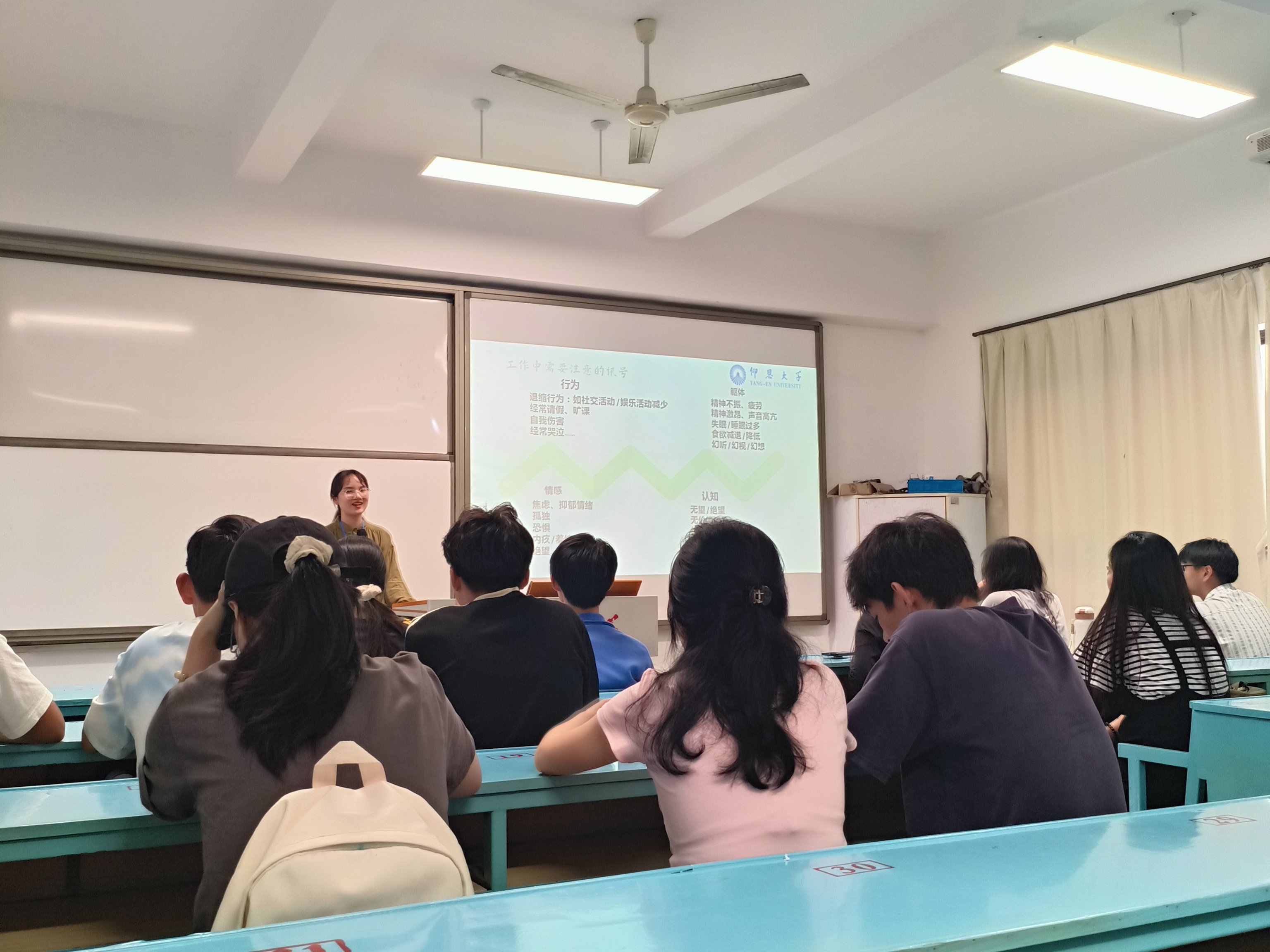 培训中,柯嘉雯首先通过概念辨析和示例讲解全面剖析了心理委员的四重身份,强调了心理委员在维护班级心理健康环境中的重要作用;紧接着讲解了开展心理团辅活动的各项流程、特点以及注意事项,鼓励各班心理委员可以在融入团辅技术的基础上,积极开展富有创造性的班级心理活动;随后,在常见心理困扰、心理危机的识别与处理的讲解中,通过生动的案例分析,帮助学生理解了情绪的产生机制及应对策略,同时也让学生领悟良好的沟通技巧和保密意识对于心理委员工作的重要性,确保其在今后的工作中能够不断增强责任感,通过倾听与支持有效应对班级一般心理问题。