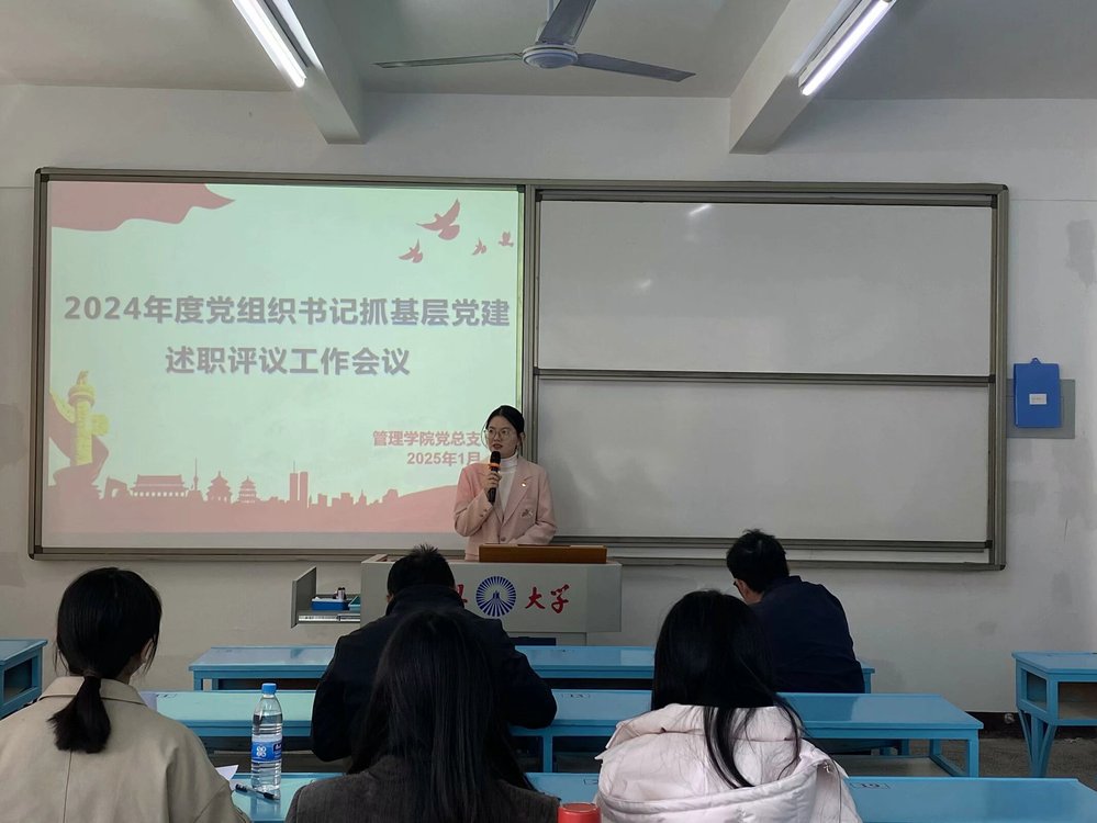 为深入学习贯彻落实党的二十届三中全会精神,推进全面从严治党向纵深发展,按照学校党委统一部署,2025年1月3日,天天摸天天操党总支在吉隆楼205召开2024年度党组织书记抓基层党建述职评议工作会议。会议由学院党总支组织委员连景霞主持,各党支部书记参加会议。