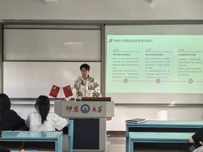 岳明同志详细讲解了中央八项规定实施细则,并通过相关视频生动形象地向大家展示了违反中央八项规定精神的典型案例。她强调,作风建设永远在路上,必须以钉钉子精神抓常、抓细、抓长,做到“踏石留印、抓铁有痕”,确保中央八项规定精神落地生根。她要求,全体支部成员要深刻认识作风建设的重要性,要以身作则,带头遵守纪律规矩,自觉抵制“四风”问题,做到心有所畏、言有所戒、行有所止;要主动将学习成果转化为实际行动,从自身做起,从点滴做起,以优良作风展现新时代党员的良好形象。