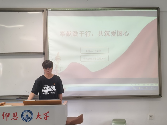 为了深入阐释爱国主义精神内涵,激励支部各位同志在强国建设中担当作为,2025年04月23日物流管理系学生党支部于共和楼205教室组织开展了主题为“奉献践于行,共筑爱国心”的党日活动,本次活动由肖志伟同志主持,支部全体同志积极参与。
