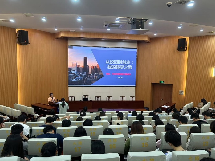 分享报告中,校友吴仁以“从校园到创业:我的逐梦之路”为题,围绕“十年规划:目标的力量、从0到1:校园创业的实践、创业精神:支撑我走下去的内核、学习+坚持”四个方面分享了自己求学和创业的奋斗历程。她深情回顾在母校的求学历程及所学所获,建议学弟学妹们不仅要做好规划、坚持学习、不怕吃苦,更要牢记和践行校训精神,不断提升自身综合素质和竞争能力。