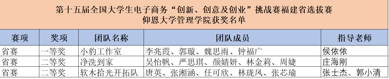 近日,第十五届全国大学生电子商务“创新、创意及创业”挑战赛福建省选拔赛在闽江学院融侨文体中心落下帷幕。我院共有3支队伍入围线上赛,经过激烈角逐,最终斩获一等奖1项、二等奖2项。