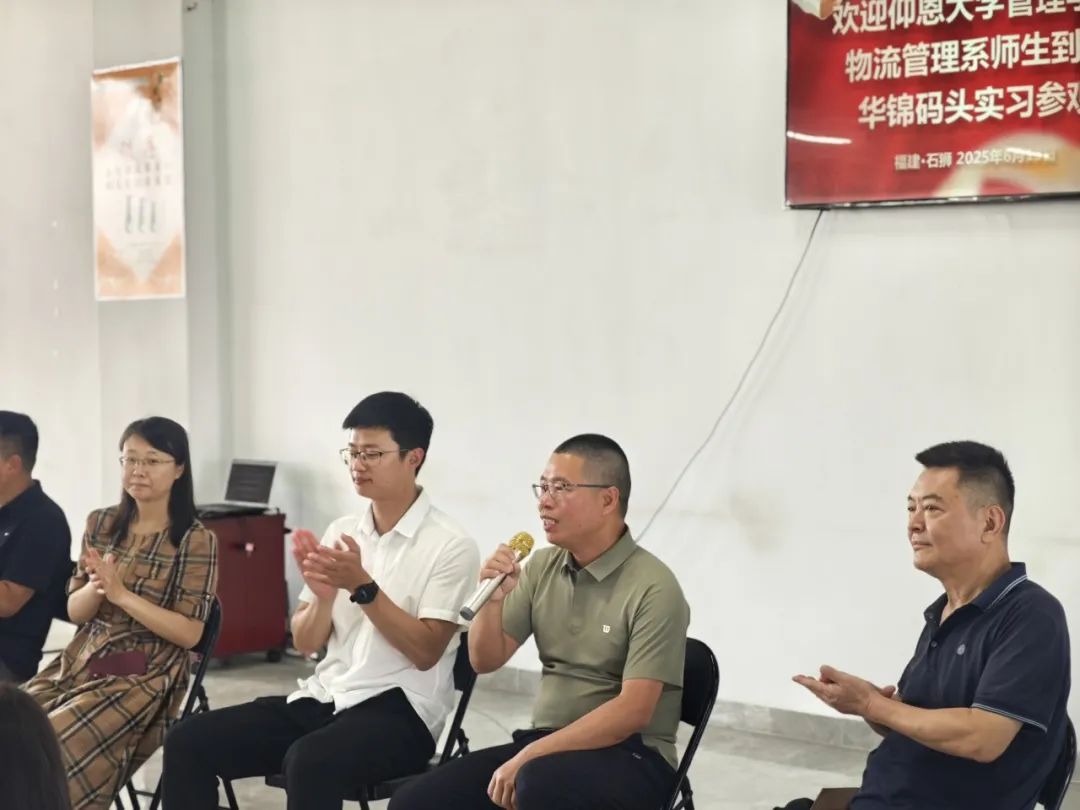 座谈会上,物流管理系师生与华锦码头管理团队围绕行业前沿议题开展深度研讨。学生聚焦自动化码头智能运维、极端天气船舶调度、绿色港口转型发展等行业热点领域踊跃提问。华锦码头副总经理谢金泉及部门负责人结合码头运营案例与行业发展经验,从技术应用、管理策略、政策响应等角度逐一解答,将物流规划、风险管理等理论知识融入实践场景,实现校企间的知识流动与经验互鉴,生动诠释“产学研用”协同育人的创新实效。