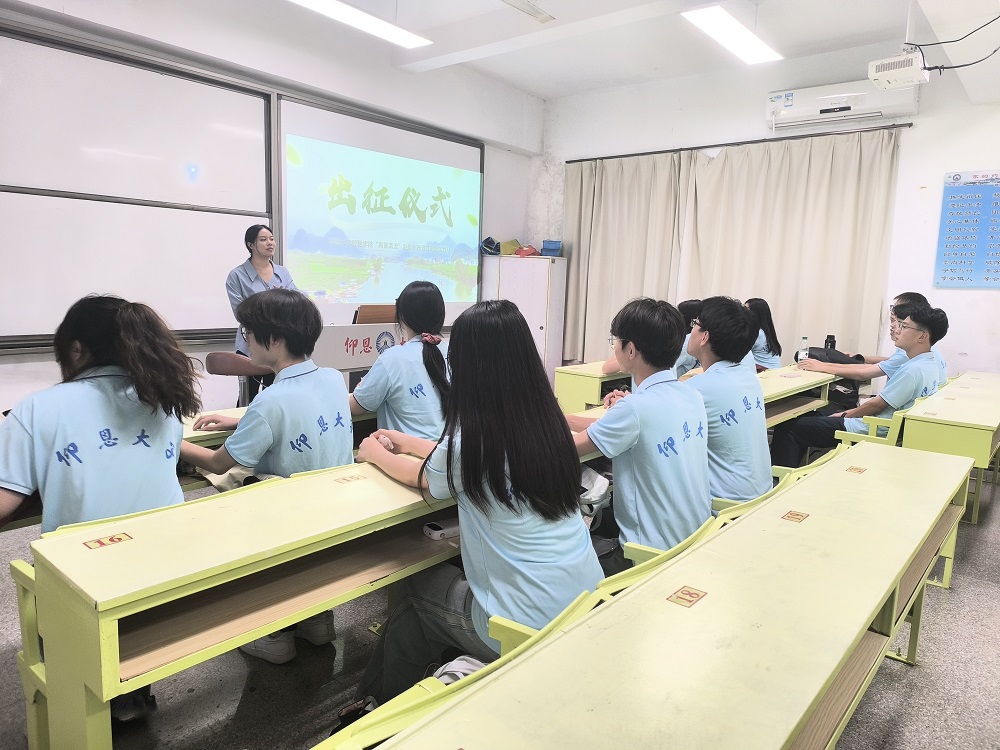 盛夏骄阳映碧波,青春步履护长河。为深入贯彻习近平总书记生态文明建设思想,积极响应“绿水青山就是金山银山”的号召。2025年6月29日,仰恩大学天天摸天天操“禹鉴清流”赴泉州市洛江暑期实践队在仰恩大学第一教学区共和楼306举行“河小禹”专项行动出征仪式,指导老师叶丽香带领实践队16名成员开展本次仪式,以青春之名,共绘河流生态画卷。