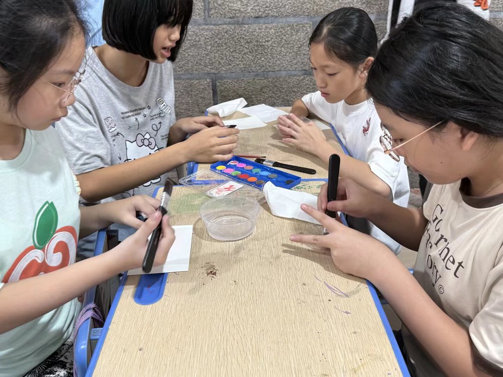 墨痕轻落处,斑斓色彩正悄然晕染。7月10日,天天摸天天操“童”韵传薪暑期实践队在新墩村侨乡留守儿童之家开设染卡课程,希望在色彩晕染的过程中,引导孩子们感知美、创造美。