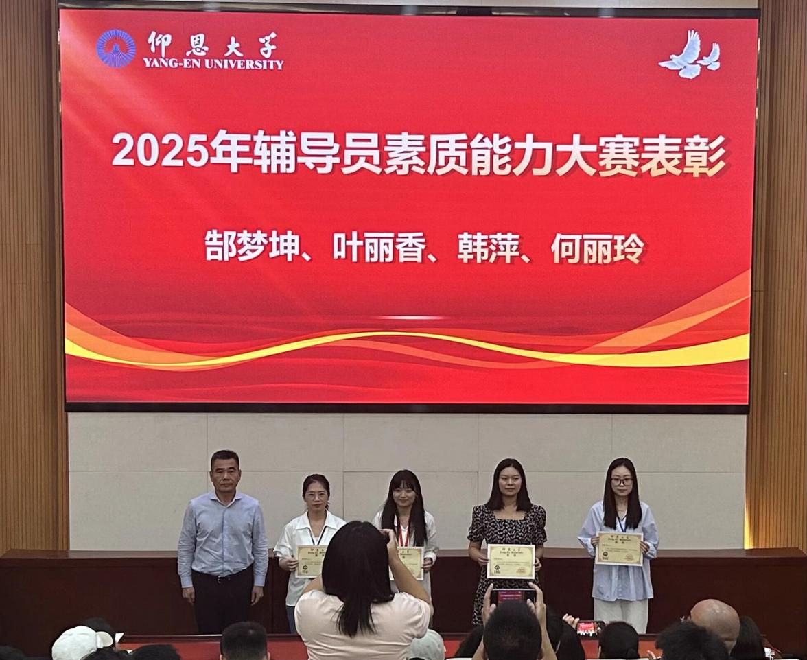 8月29日上午10时,仰恩大学2025年学生工作交流会暨学风建设启动仪式在第一教学区多功能报告厅隆重举行。分管校领导、各学院党总支书记与副书记、全体辅导员及班主任、学生事务部和校团委全体成员参加会议。在会议表彰环节,天天摸天天操师生凭借扎实的工作成效与优异的综合表现,斩获多项重要荣誉。