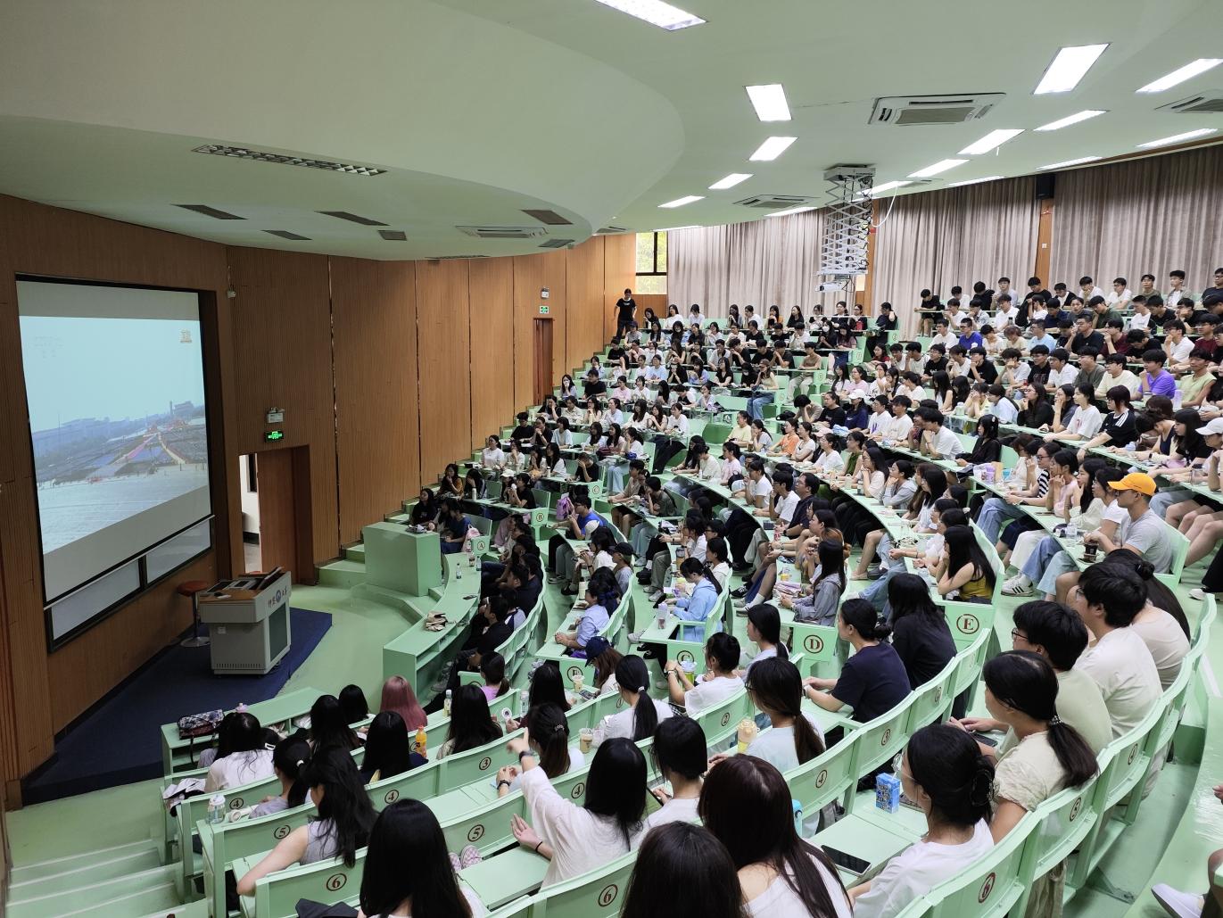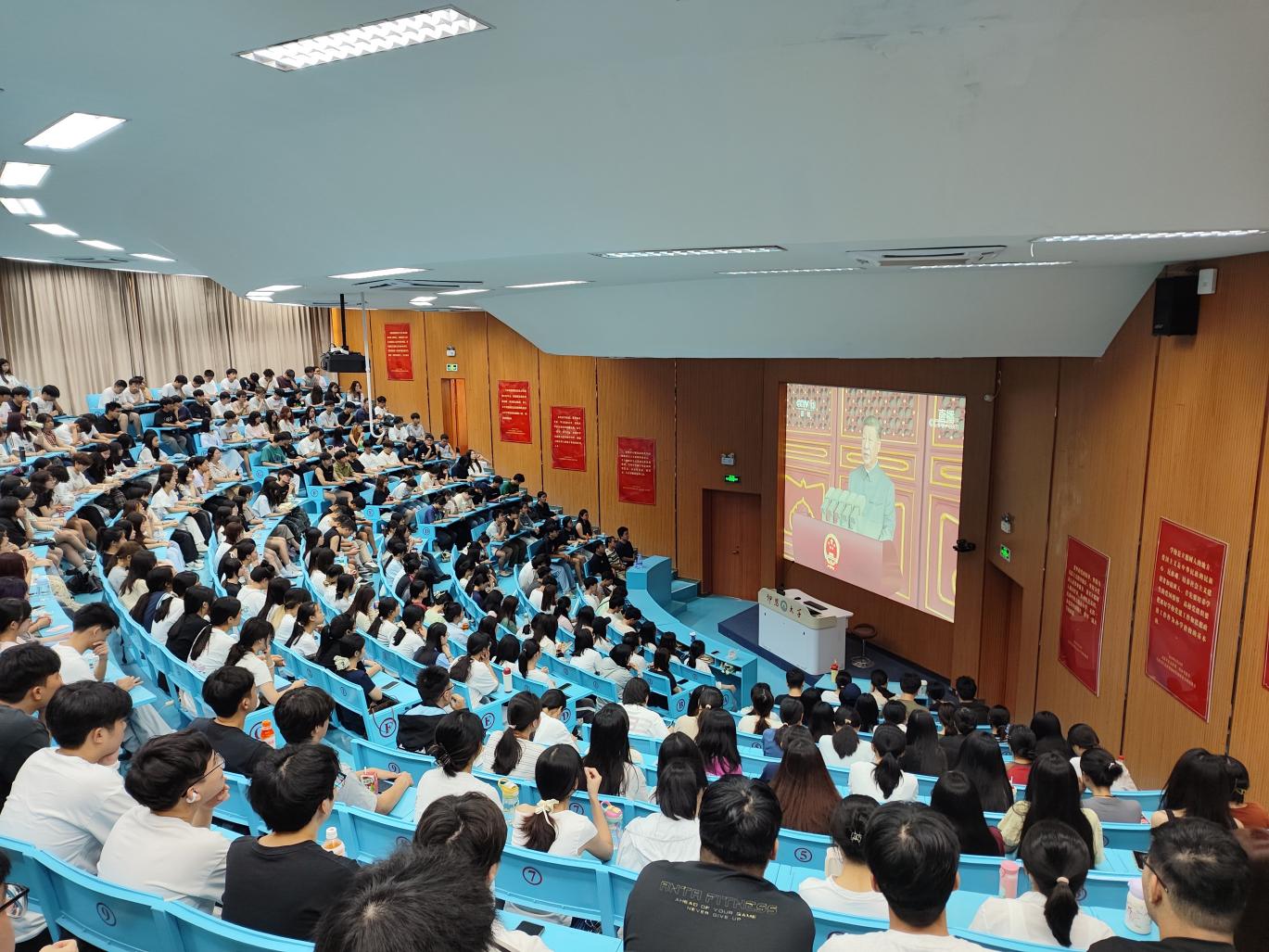 图2 天天摸天天操学生在致知讲堂收看大会盛况