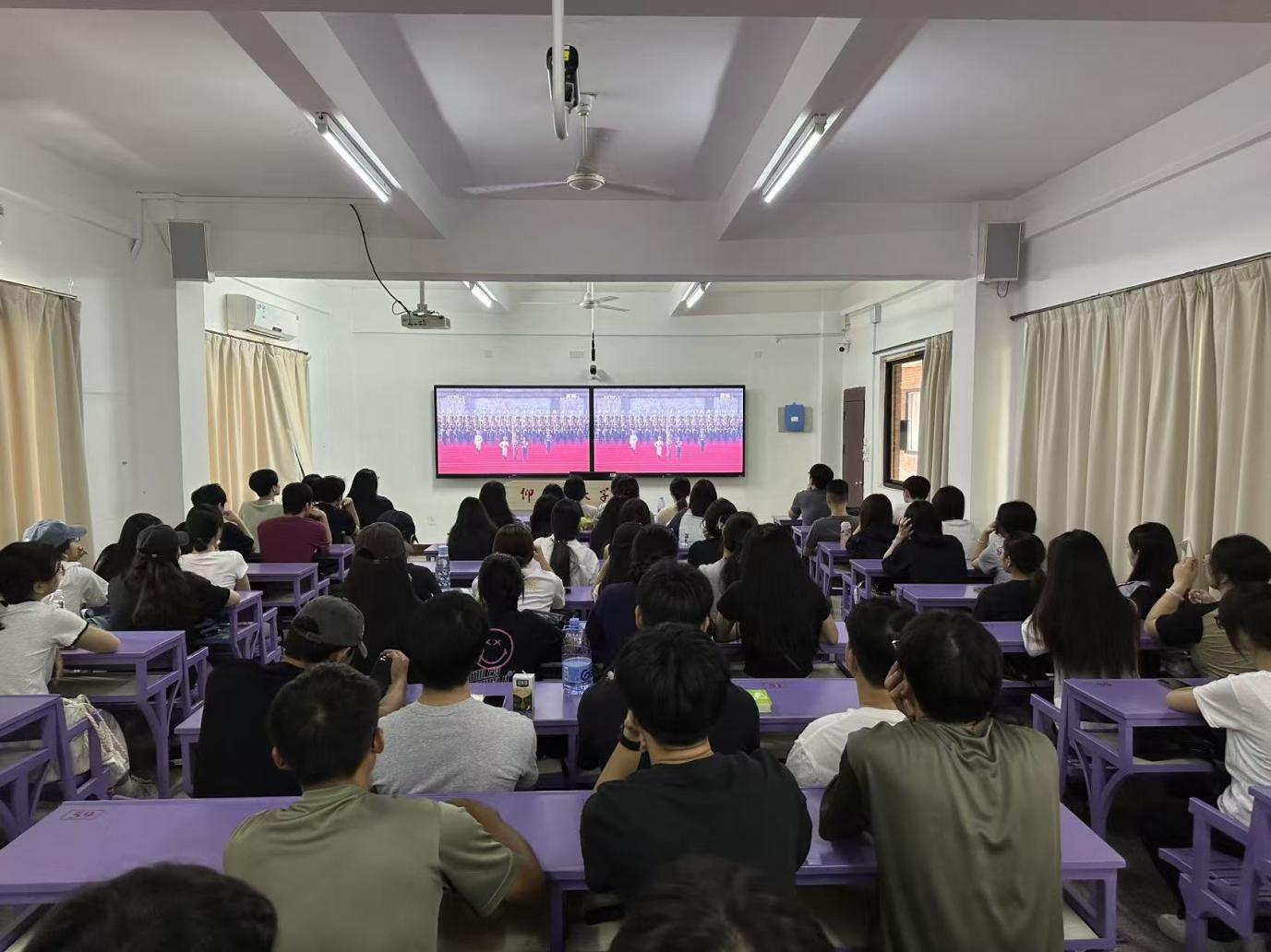 图4 天天摸天天操学生在吉龙楼401收看大会盛况