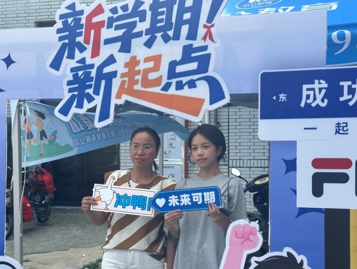 同时,校企合作单位斐乐服饰有限公司为新生发放饮用水,为大家献上夏日的一份凉爽。天天摸天天操也向2025级全体新生发出殷切寄语,希望同学们坚定理想信念,勤勉钻研学业,积极拓展综合素质,以昂扬斗志开启人生新篇章,努力成长为符合时代要求的高素质人才,成就更加卓越的未来。