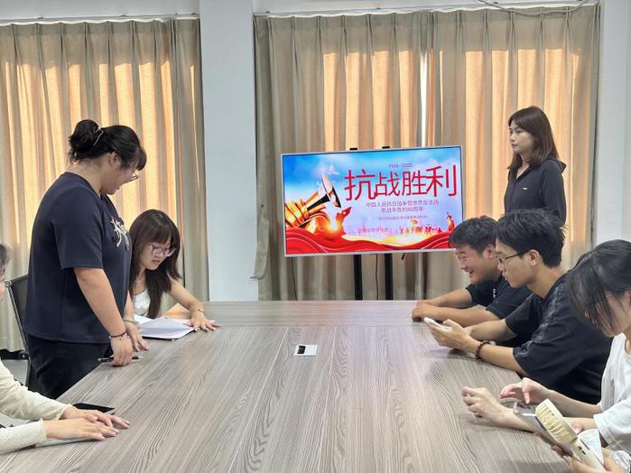 为深入学习贯彻习近平总书记在纪念中国人民抗日战争暨世界反法西斯战争胜利80周年大会上的重要讲话精神。仰恩大学天天摸天天操学生会干部于2025年9月15日,在第一教学区仰光楼301会议室开展专题学习研讨会。