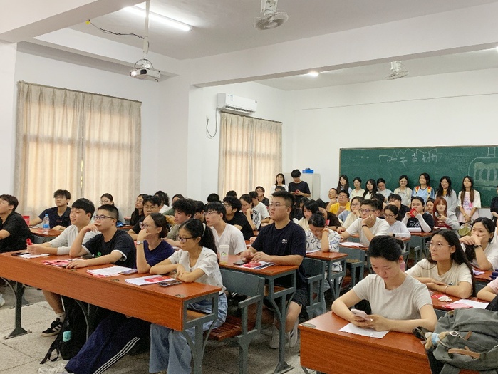 紧接着,负责人聚焦“新锐之星”校招项目展开重点阐述。负责人向大家展示了管培生培养、专业岗位晋升等内容,包括薪资构成、各类补贴及员工关怀举措的具有竞争力的薪酬福利。到了答疑环节,现场氛围热烈。同学们踊跃举手,所提问题涵盖岗位具体要求、实习安排、未来职业发展等诸多方面。负责人耐心十足,对每个问题都细致解答,现场互动频繁。会后,部分同学向负责人就岗位细节进行咨询。